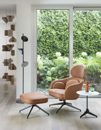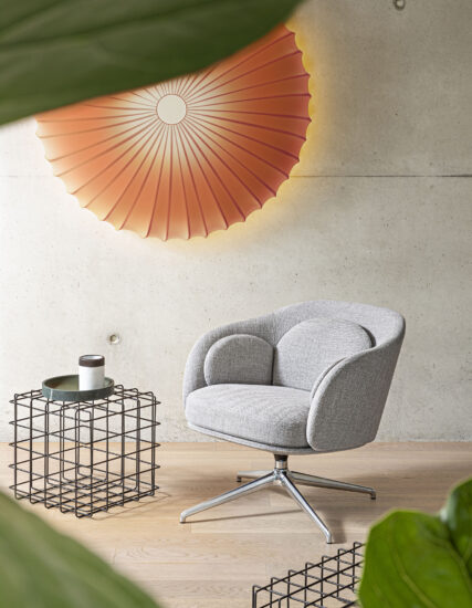 Noul Sunset este alcătuit din două părți distincte: carcasa și tetiera dintr-un motiv anume: ușurează silueta produsului prin crearea unei linii armonioase vizual. Suprafața exterioară întinsă și riguroasă contrastează cu o haină interioară căptușită, care este mult mai moale, creând un design grafic original. Confortul zonei de relaxare este accentuat de mecanismul de inclinare, disponibil doar in varianta cu tetiera, in timp ce baza este prevazuta cu mecanism de rotatie atat pentru fotoliu, cat si pentru varianta bergere. Sunset combină într-un mod ideal designul sofisticat, confortul maxim și materialele și tehnicile de înaltă calitate. Disponibil cu diverse tapițerie pe baza stea din aluminiu. Huse complet detasabile.