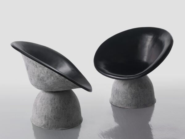 Scaune din fibră de sticlă lăcuită sau tapițată.